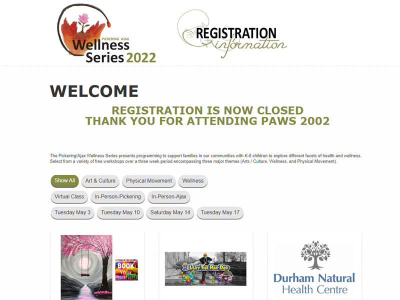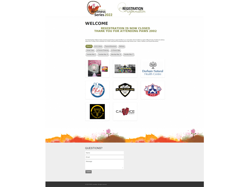I again did the marketing as part of an events team that coordinated 16 schools in a combined online / in-person educational wellness series. The logo was originally designed by a student and then refined for marketing. A lot of this project was built on the backbone of the original PAWS series from the year before.